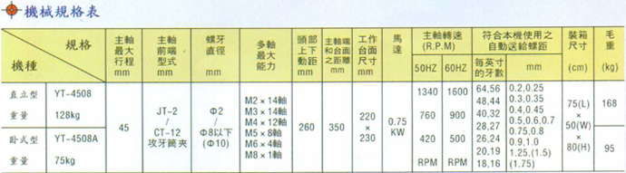 • 產(chǎn)品名稱: YT-4508臥式對攻多軸攻牙機